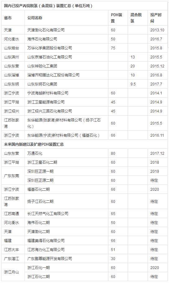 近年來(lái),丙烷脫氫工藝在中國(guó)迅速發(fā)展,產(chǎn)能擴(kuò)張速度驚人,逐漸成為丙烯重要來(lái)源之一。自2013年10月,隨著天津渤化60萬(wàn)噸/年的丙烷脫氫裝置投產(chǎn)運(yùn)行,丙烷脫氫裝置在國(guó)內(nèi)正式拉開(kāi)序幕。此后的幾年里,丙烷脫氫裝置在國(guó)內(nèi)遍地開(kāi)花,迅速發(fā)展,主要集中在華東的江浙地區(qū)、華北地區(qū)以及山東地區(qū),而且近兩三年混合烷烴脫氫這種更加靈活的裝置在山東地區(qū)陸續(xù)投產(chǎn)運(yùn)行。至今,國(guó)內(nèi)丙烷脫氫(含混烷)制丙烯總產(chǎn)能達(dá)到513.5萬(wàn)噸。但是從下表可以看出,華南地區(qū)尚無(wú)丙烷脫氫裝置,深圳巨正源丙烷脫氫裝置建成后,將填補(bǔ)華南地區(qū)丙烷脫氫制高性能聚丙烯及下游加工項(xiàng)目的空缺,給當(dāng)?shù)鼗て髽I(yè)提供優(yōu)質(zhì)的化工原料。