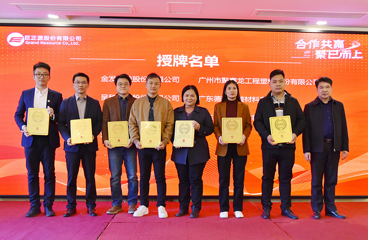 會(huì)議期間,巨正源向30家合作伙伴頒發(fā)2024年度戰(zhàn)略合作伙伴、優(yōu)秀客戶等獎(jiǎng)項(xiàng)。廣物控股集團(tuán)領(lǐng)導(dǎo)、巨正源領(lǐng)導(dǎo)班子為獲獎(jiǎng)客戶頒發(fā)牌匾。