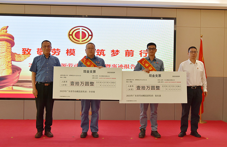 會議宣讀了對榮獲“廣東省勞動模范”的許多琦、張東波同志的表彰決定,對他們辛勤付出和工作成效予以肯定。公司領導為許多琦、張東波同志頒發獎金,并為許多琦、張東波“勞模和工匠人才創新工作室”揭牌。