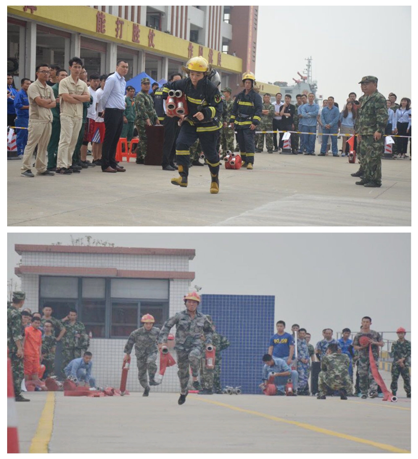 在“5盤水帶連接操”比賽中,盛源代表隊(duì)的李嘉良和梁耀斌配合默契,雙方你甩、我卷,快、準(zhǔn)、狠,水帶連接動(dòng)作嫻熟,以17.91秒的速度取得單項(xiàng)第一名,贏得了全場(chǎng)觀眾的喝彩。在“負(fù)重攀登6樓”比賽中,科技代表隊(duì)的王春波僅用了29.94秒時(shí)間。